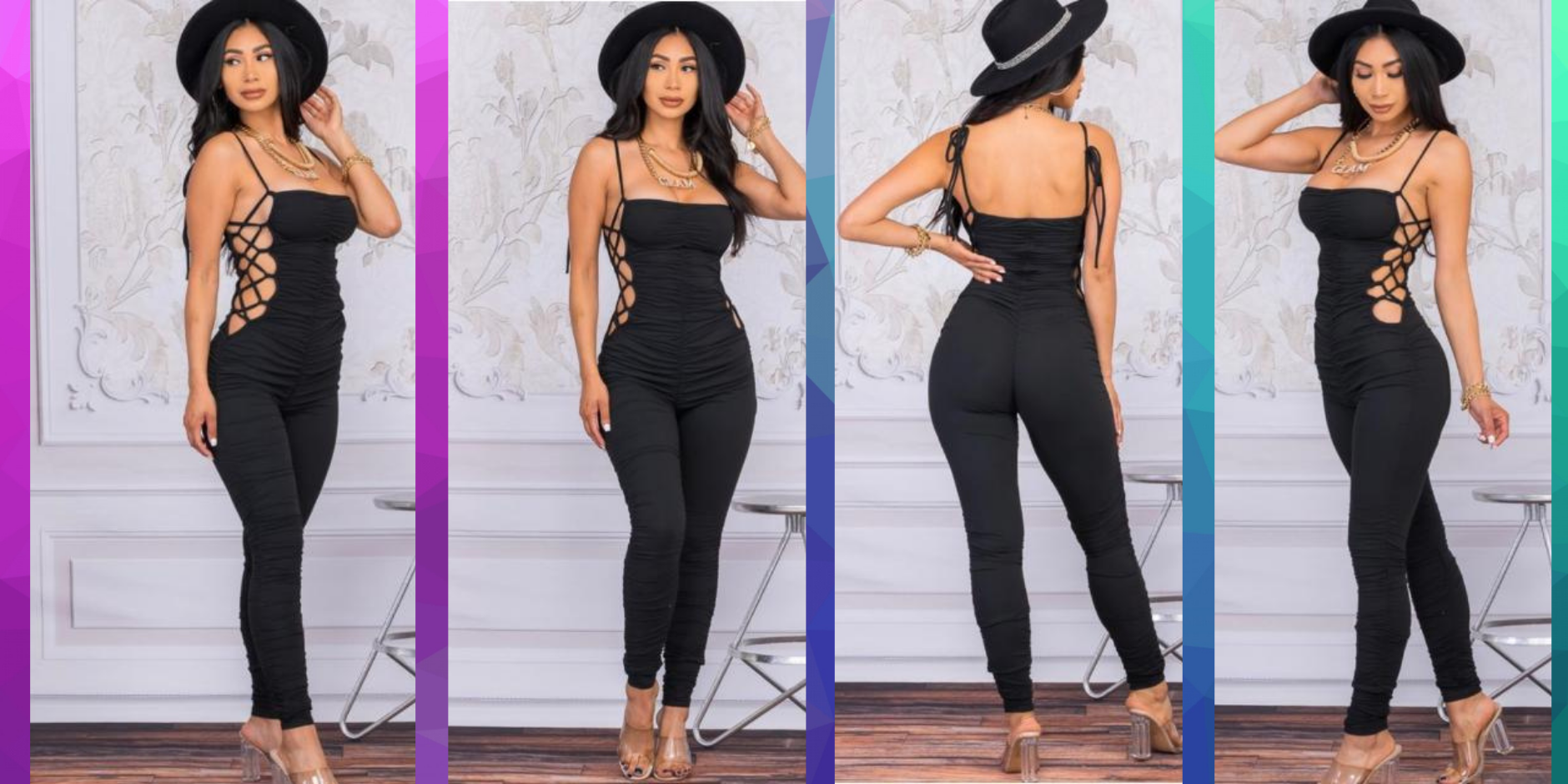 adjustable side crisscross on the side that tie, showing skin on both sides
